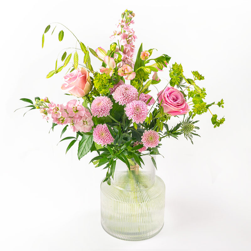 Verras een speciaal iemand met deze creatieve bloemencreatie in roze. De bloemist kiest de mooiste seizoensbloemen en knoopt er met de hand een uniek meesterwerk van. De keuzevrijheid bespaart hen tijd, geeft jou het meest betaalbare boeket en de ontvanger een unieke compositie. Met zijn geweldige prijs, hoge kwaliteit en uniekheid is ons roze bloemistenboeket een verrassing die voor iedereen een win-win is, elke keer dat je het bestelt.