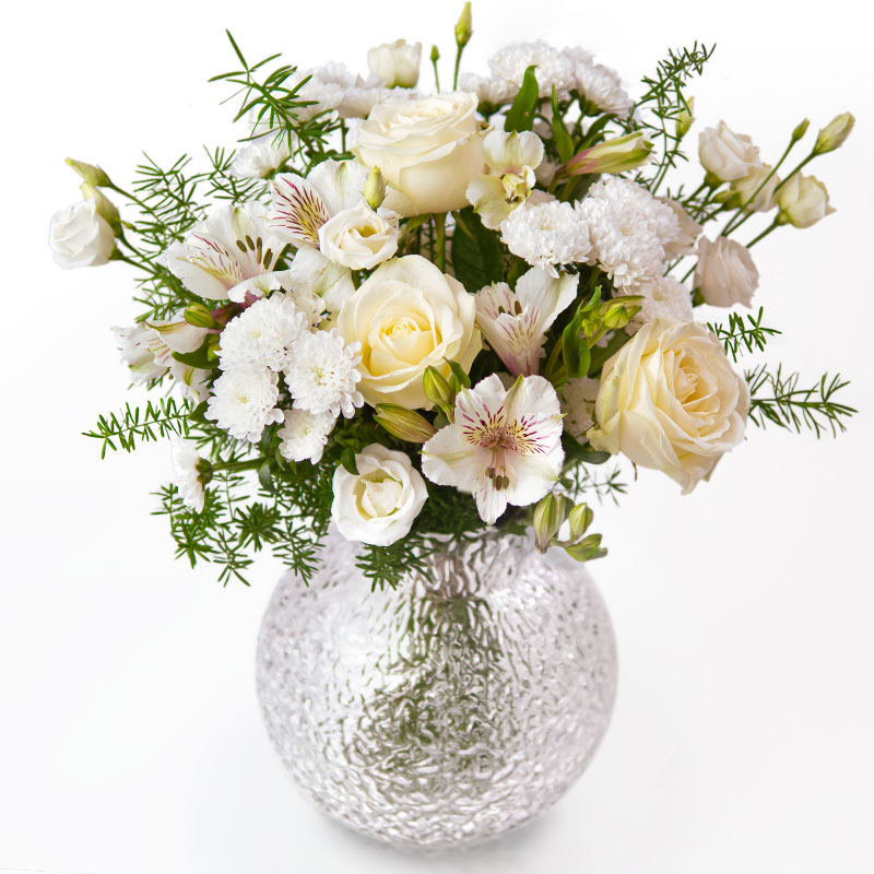 Stuur ons best geprijsde witte bloemistenboeket! Dit elegante en unieke boeket in wit symboliseert eerlijkheid, onschuld en perfectie. Laat onze ervaren lokale bloemist de mooiste lokaal verkrijgbare of seizoensbloemen kiezen om een unieke compositie te maken. Doordat de bloemist geen specifieke bloemen hoeft in te kopen, kan hij de prijs laag houden, krijg jij het voordeligste boeket en de ontvanger elke keer dat je het bestelt een unieke compositie. Onze witte bloemistenboeket is een kwalitatieve maar betaalbare verrassing die ongetwijfeld een win-win is voor iedereen.