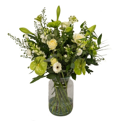 Dit witte XL boeket laat de ontvanger weten dat u meeleeft.