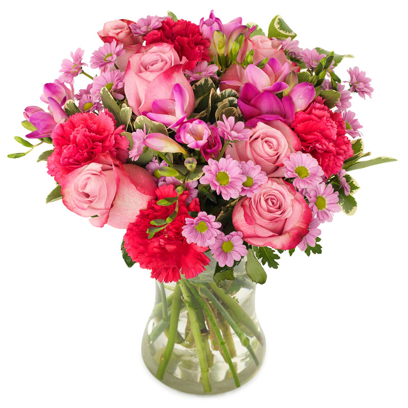 Dit boeket is een betaalbaar meesterwerk. Tover een glimlach op het gezicht van een speciaal persoon met een kleurrijk boeket in roze en cerise! Dit boeket is een van onze bestsellers en perfect om je speciale persoon te laten weten hoe je je voelt. Lagere prijs voor jou, geweldige WOW voor hem of haar.