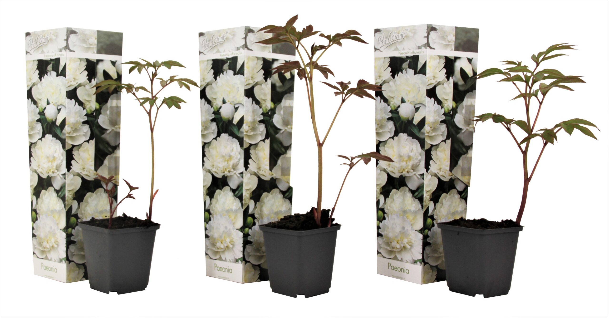Er zijn niet veel planten die zulke indrukwekkende bloemen kunnen produceren als de pioenroos. De pioen maakt deel uit van de Paeoniaceae-familie. Vrijwel alle pioenrozen komen oorspronkelijk uit Azië. Deze bloem is vernoemd naar Paeon, de arts van de Griekse goden. De pioen wordt beschouwd als een symbool van liefde, geluk, gezondheid, voorspoed en romantiek. Deze pioenroos krijgt in de periode mei tot en met juni prachtige, grote, witte bloemen. Bovendien is de pioenroos zowel geschikt voorin de tuin als voor plaatsing in boeketten. Zolang de pioen in een licht vochtige grond staat is hij zeer winterhard (tot ongeveer -10 graden). In de herfst-winter sterft de knol bovengronds af en zal zich niet of nauwelijks ontwikkelen. Maak je dus geen zorgen als je alleen maar een stukje knol inde pot ziet zitten, dit is volkomen normaal. Ondergronds gebeurt er echter veel. Daar vormen zich nieuwe stengels waarop in het voorjaar de bloemen verschijnen.