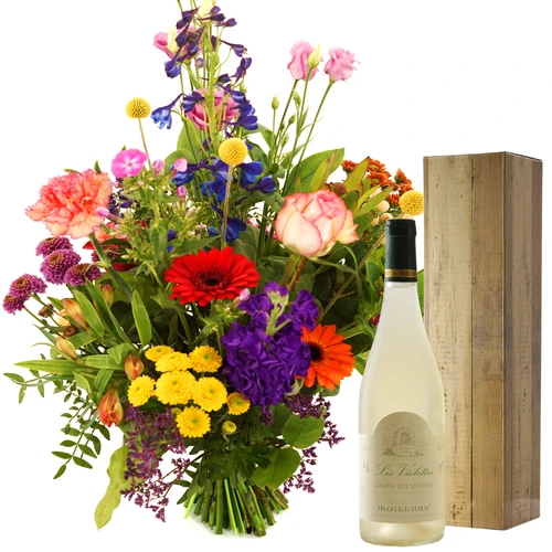 Vaderdag Plukboeket helemaal van deze tijd, samen bestellen met een fles witte wijn een oprecht Vaderdag cadeau, Thuiswinkel Lid. Op vaderdag bezorgd, mits op tijd besteld.