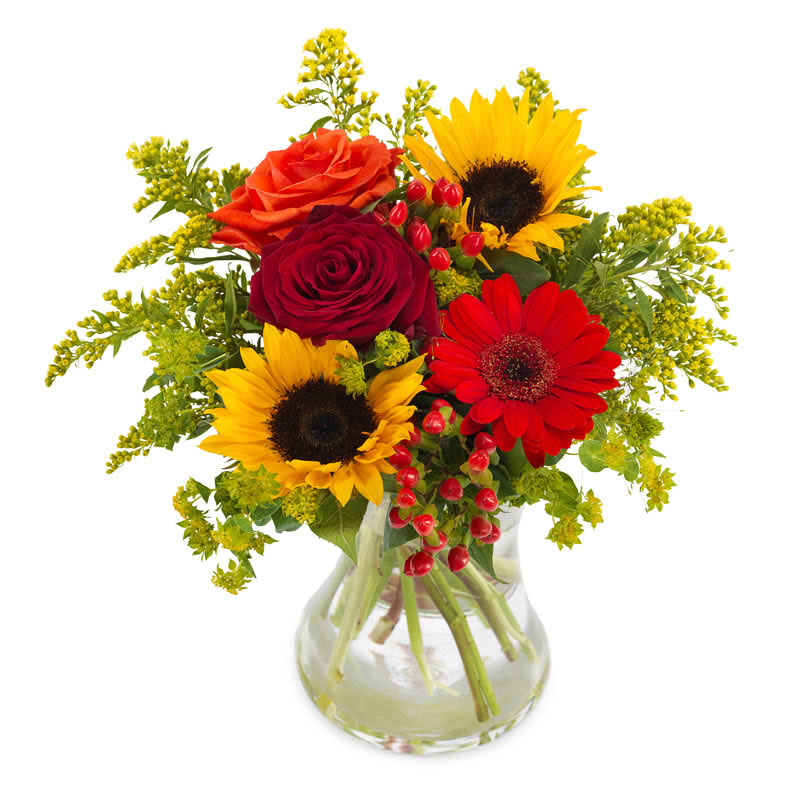 Warme zwoele zomeravonden halen in velen alle romantiek naar boven. Dit boeket in warme tinten is mooi voor veel gelegenheden, ook als verrassing voor een vakantieliefde!